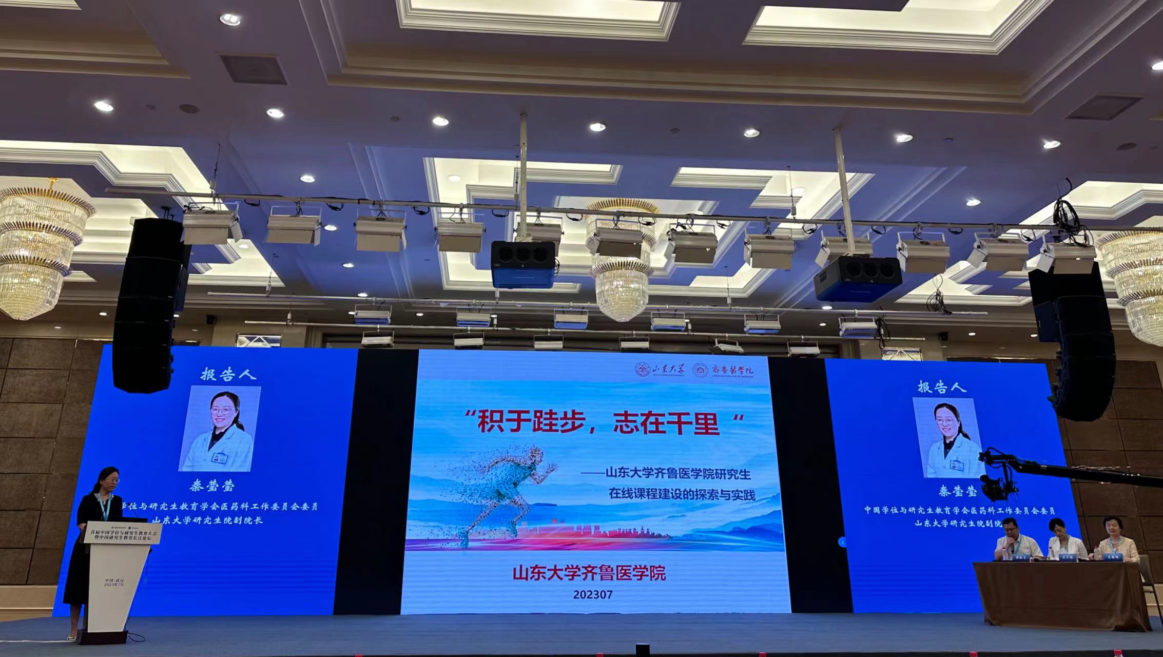山东大学齐鲁医学院研究生教育办公室、学科与发展规划办公室主任秦莹莹受邀在大会“新时代医药学学位与研究生教育高质量发展论坛暨全国第十三届医学学学位与研究生教育学术年会”作报告。秦莹莹以“积于跬步,志在千里”为题分享山东大学齐鲁医学院研究生在线课程建设的探索与实践。报告阐述了齐鲁医学百年历史积淀,以“西医教育理念”“儒家文化基因”“红色革命传统”交汇形成“博施济众,广智求真”的精神品格;以“崇实求新的探索精神”“心系天下的家国情怀”“仁心仁术的道德品质”“文理兼修的教育理念”传承齐鲁医学教育基因。