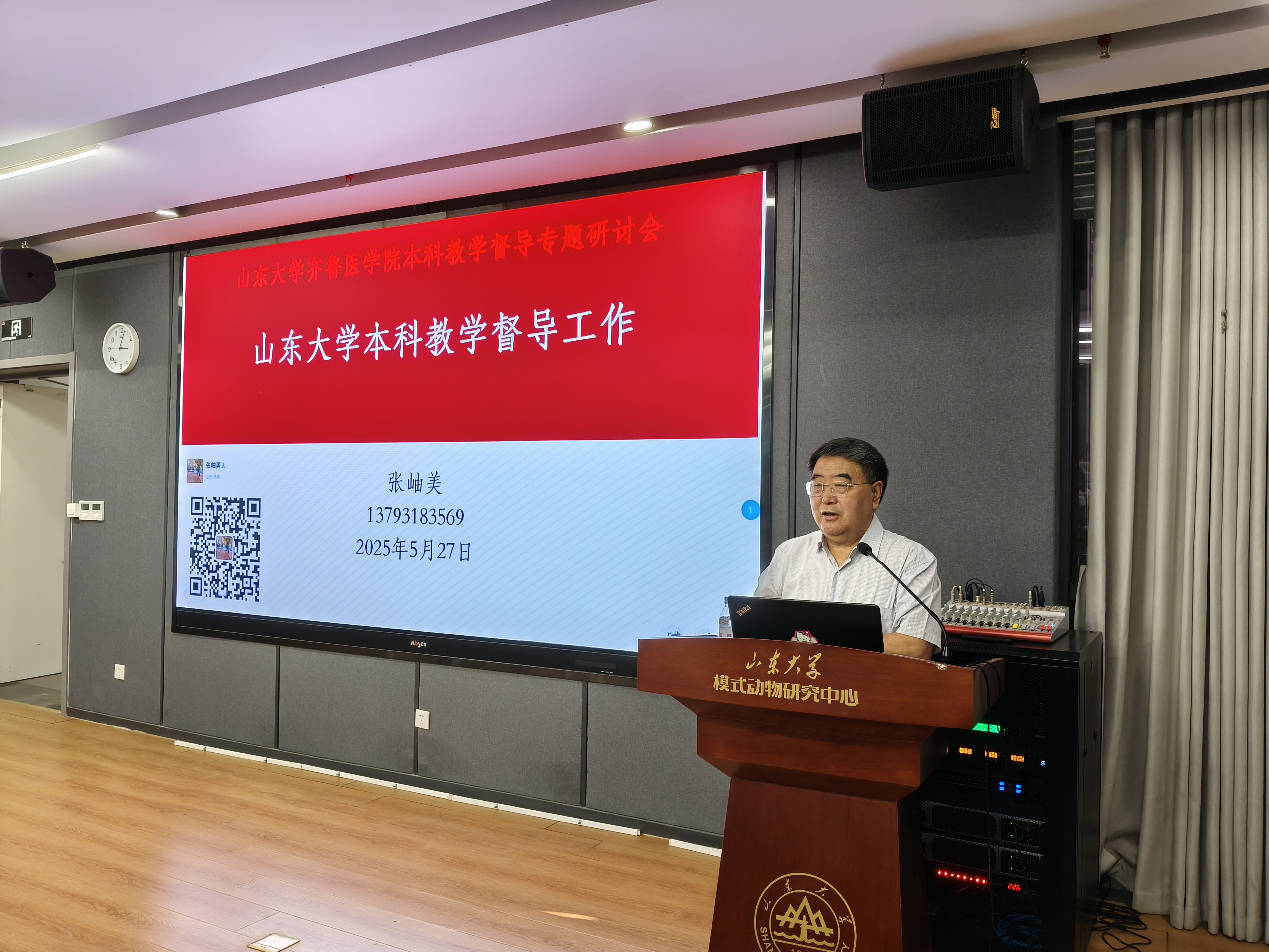 为进一步强化本科教学质量监控体系,5月27日下午,齐鲁医学院召开本科教学督导专题研讨会,特邀天津医科大学原副校长娄建石教授作专题报告,共谋医学教育质量提升之道。齐鲁医学院常务副院长马春红、山东大学本科教学督导组组长张岫美、齐鲁医学院教学管理办公室主任、学科与发展规划办公室主任邹永新出席会议。会议由齐鲁医学院教学管理办公室副主任刘尚明主持。