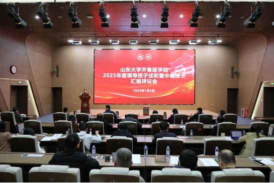 1月4日下午,山东大学齐鲁医学院召开2025年度领导班子述职考核暨中层班子汇报评议会,全面总结2025年工作成效,系统谋划2026年工作思路举措。齐鲁医学院党工委书记陈鑫出席会议并代表院领导班子述职。常务副院长马春红主持会议,山东大学党校办公室主任张海宁出席会议。
