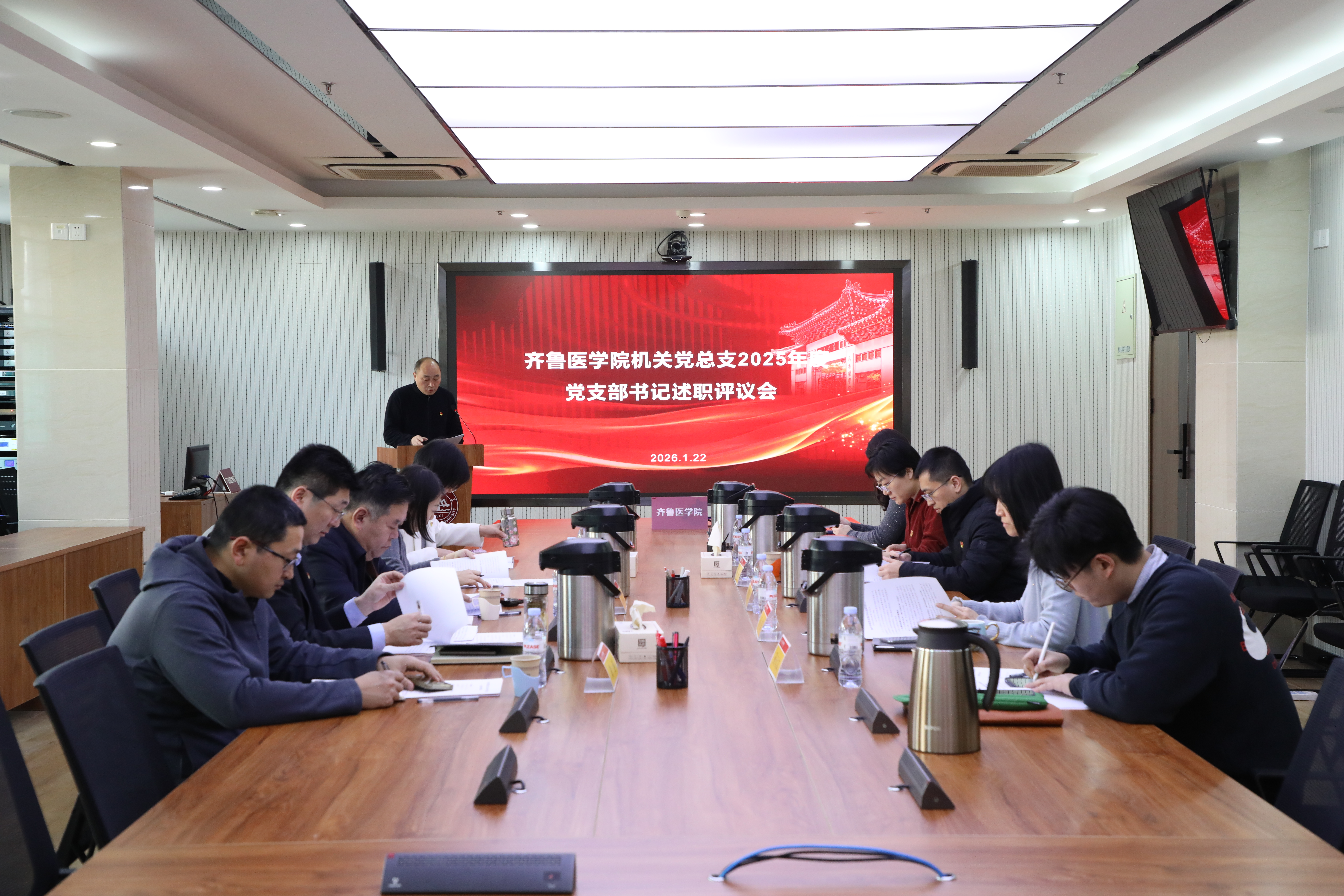 1月22日,山东大学齐鲁医学院机关党总支举行2025年度党支部书记述职评议考核会议。学校第五党建考核组副组长、核科学与能源动力学院党委副书记李永卫,组员明立彩到会指导,齐鲁医学院党工委副书记赵福昌出席会议,会议由机关党总支书记高飞主持。