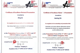 8月8日至11日,第11届亚太解剖学大会暨中国解剖学会第39届(2025年)学术年会在中国广州举办。基础医学院亓星荣获研究生论坛优秀博士论文一等奖、史家明荣获研究生论坛优秀硕士论文二等奖。