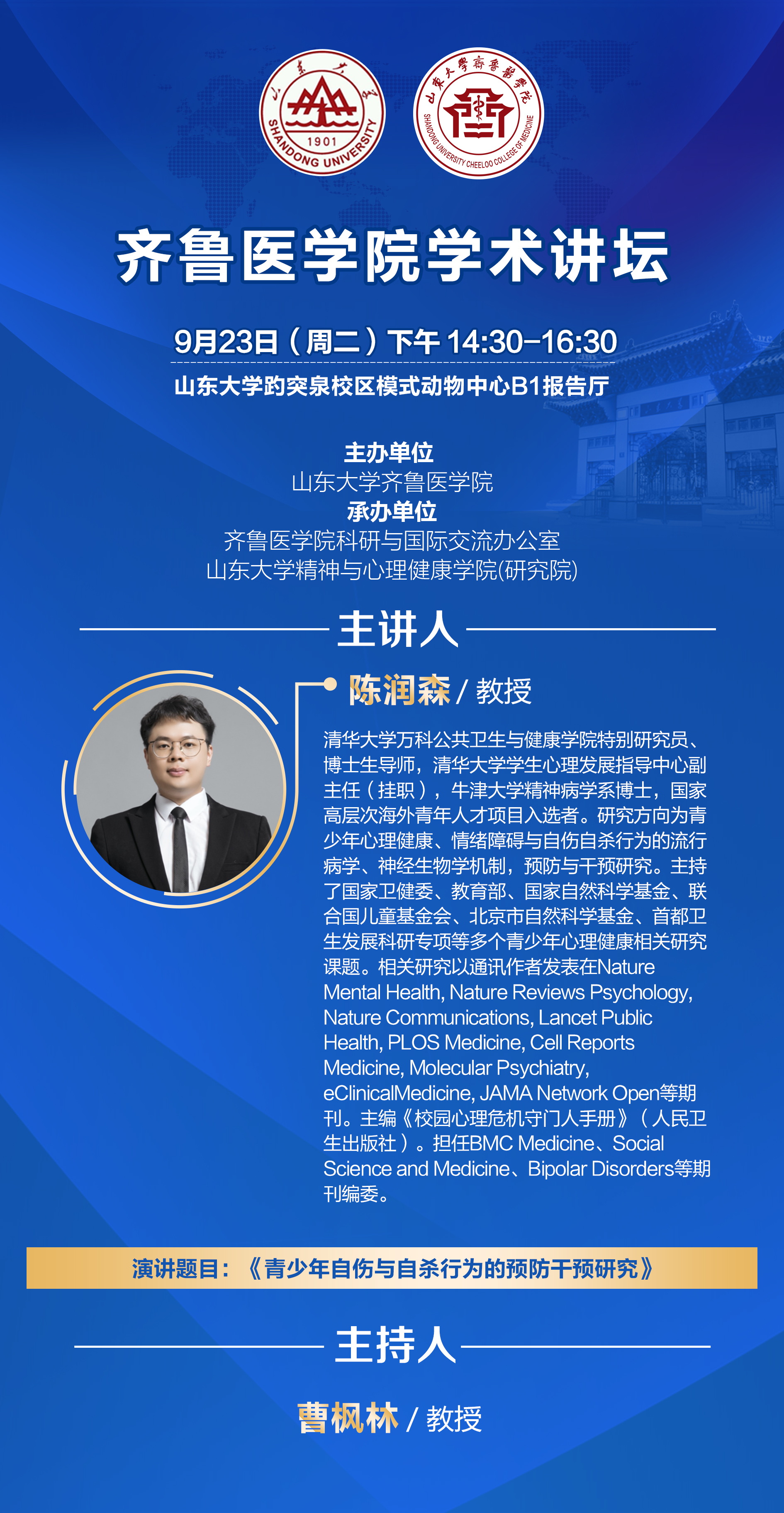 讲座通知:青少年自伤与自杀行为的预防干预研究