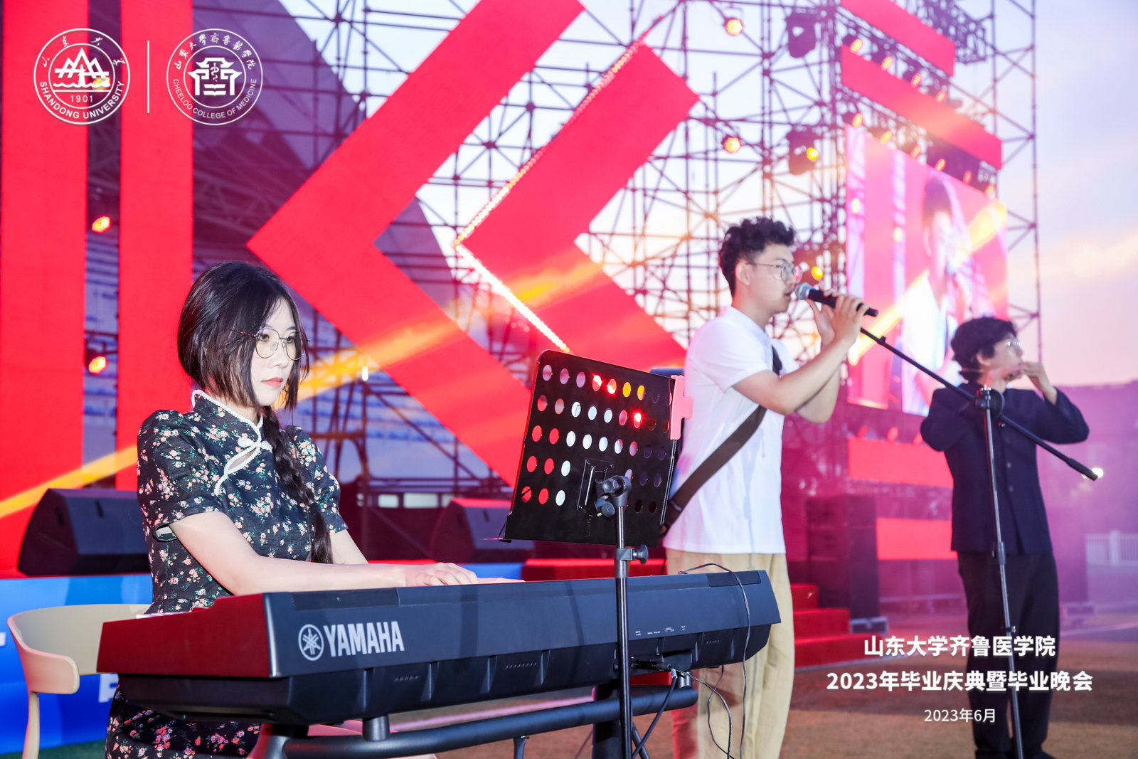 癸卯夏日,青春璀璨,6月20日晚,齐鲁医学院顺利举行2023年“生如夏花”毕业晚会。毕业生和家长们欢聚趵突泉校区操场,学子们以歌声歌颂青春过往,以回忆激励未来前行。中国工程院院士、山东大学教授于金明,山东大学副校长、齐鲁医学院院长易凡,山东大学校长助理、本科生院院长曹现强,齐鲁医学院党工委书记、齐鲁医院(第一临床学院)党委书记陈鑫,齐鲁医学院常务副院长曲波等出席活动。